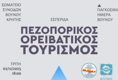 Το Σωματείο Συνοδών Βουνού Κρήτης, στο πλαίσιο της Παγκόσμιας Ημέρας Βουνού, διοργανώνει τη 2η Εσπερίδα με θέμα τον «Πεζοπορικό -