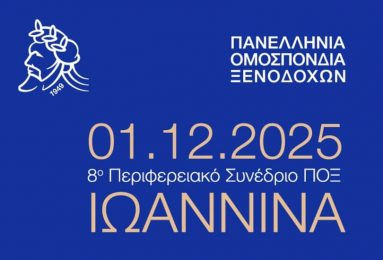 Τη Δευτέρα 1η Δεκεμβρίου 2025, η Πανελλήνια Ομοσπονδία Ξενοδόχων (ΠΟΞ), πραγματοποιεί στα Ιωάννινα το 8ο Περιφερειακό Συνέδριό της, σε συνεργασία