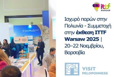 Η Περιφέρεια Πελοποννήσου συμμετείχε στη διεθνή τουριστική έκθεση ITTF Warsaw 2025, η οποία πραγματοποιήθηκε στη Βαρσοβία από τις 20 έως