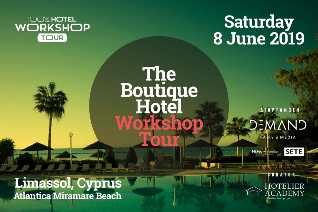 Με δεδομένη την ανάπτυξη των πολυτελών resort στην Κύπρο, αλλά και τη νέα τάση στη δημιουργία Boutique Ξενοδοχείων, το 100% Hotel Workshop Tour θα παρουσιάσει μια ειδική θεματολογία προσαρμοσμένη στις ανάγκες του προορισμού, δίνοντας πολύτιμες συμβουλές για τη νέα εποχή των ξενοδοχείων.