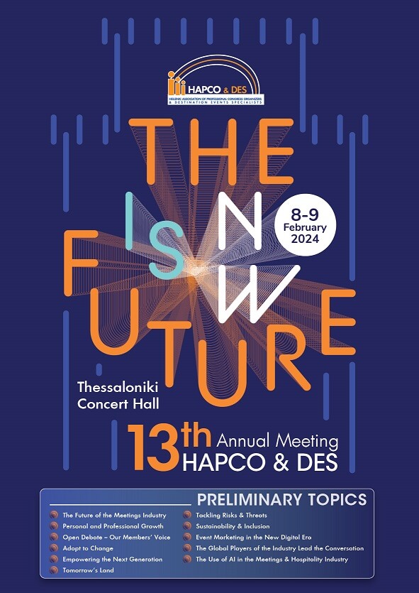 Τη δυναμική του Εθνικού Επαγγελματικού και Συνεδριακού Τουρισμού στην ελληνική οικονομία, τα φλέγοντα ζητήματα που επιζητούν άμεσα λύση από την πολιτεία, καθώς και τις διεθνείς εξελίξεις που επηρεάζουν άρρηκτα την πορεία του κλάδου, έχει ως στόχο να αναδείξει το 13ο Πανελλήνιο Συνέδριο του HAPCO & DES (Hellenic Association of Professional Congress Organizers & Destination Events Specialists), που θα διεξαχθεί στις 8 και 9 Φεβρουαρίου 2024, στη Θεσσαλονίκη.