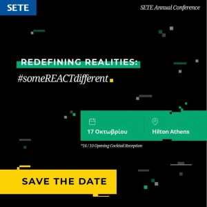Στις 17 Οκτωβρίου 2019, στο ξενοδοχείο Hilton της Αθήνας θα πραγματοποιηθεί το ετήσιο συνέδριο του Συνδέσμου Ελληνικών Τουριστικών Επιχειρήσεων (ΣΕΤΕ).