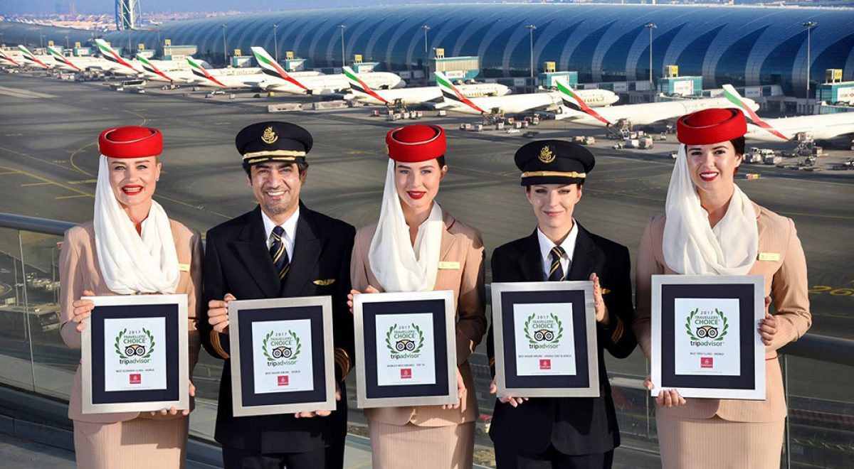 Το βραβείο της καλύτερης αεροπορικής εταιρείας παγκοσμίως απέσπασε η Emirates στα πρώτα Travelers' Choice® Awards for Airlines του TripAdvisor. Αναδείχθηκε μάλιστα στην πιο πολυβραβευμένη αεροπορική εταιρεία της διοργάνωσης, καθώς εκτός από την κορυφαία κατέκτησε ακόμη τέσσερις διακρίσεις: "κορυφαία μεγάλη αεροπορική εταιρεία για τη Μέση Ανατολή
