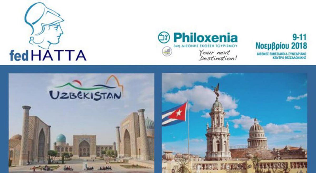 Η Ομοσπονδία Ελληνικών Συνδέσμων Γραφείων Ταξιδίων & Τουρισμού, FedHATTA, θα συμμετάσχει στην 34η έκθεση Philoxenia, στη Θεσσαλονίκη (9 - 11 Νοεμβρίου), με ανανεωμένο πρόγραμμα, εξωστρέφεια και νέες προτάσεις προορισμών για τους επισκέπτες, παρουσιάζοντας στην ελληνική τουριστική αγορά το Ουζμπεκιστάν και την Κούβα. Το Ουζμπεκιστάν είναι μια