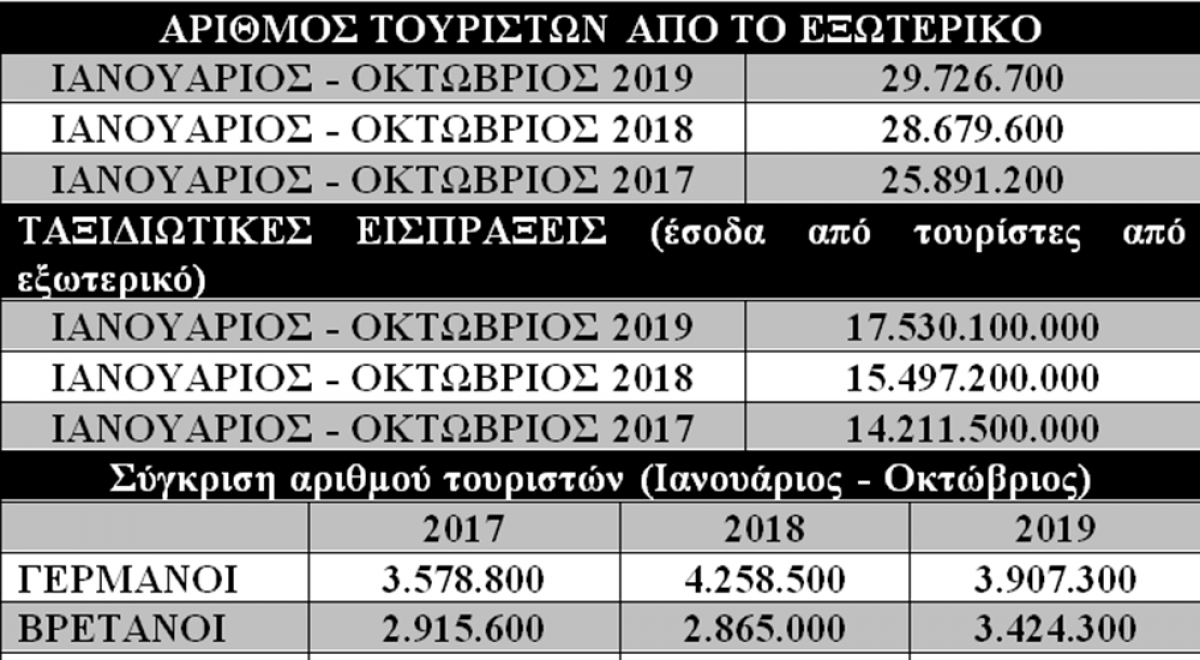 Την περίοδο Ιανουαρίου - Οκτωβρίου 2019, η εισερχόμενη ταξιδιωτική κίνηση αυξήθηκε κατά 3,7% και διαμορφώθηκε στα 29.727.000 ταξιδιώτες, έναντι 28.680.000 ταξιδιωτών την αντίστοιχη περίοδο του 2018. Ειδικότερα, η ταξιδιωτική κίνηση μέσω αεροδρομίων αυξήθηκε κατά 1,3%, ενώ αυτή μέσω οδικών σταθμών αυξήθηκε κατά 8,4%. Η ταξιδιωτική κίνηση από τη