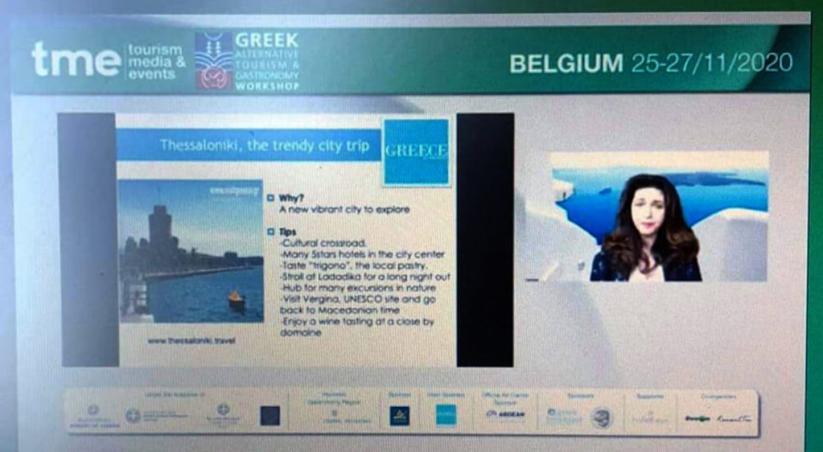 Από τις 25 έως τις 27 Νοεμβρίου πραγματοποιήθηκε το Virtual Greek Alternative Tourism & Gastronomy Workshop 2020 με στόχο το βελγικό κοινό, στο οποίο συμμετείχε ο Οργανισμός Τουρισμού Θεσσαλονίκης. Ήταν μια σημαντική διαδικτυακή διοργάνωση κατά τη διάρκεια της οποίας πραγματοποιήθηκαν webinars για όλους τους συμμετέχοντες με