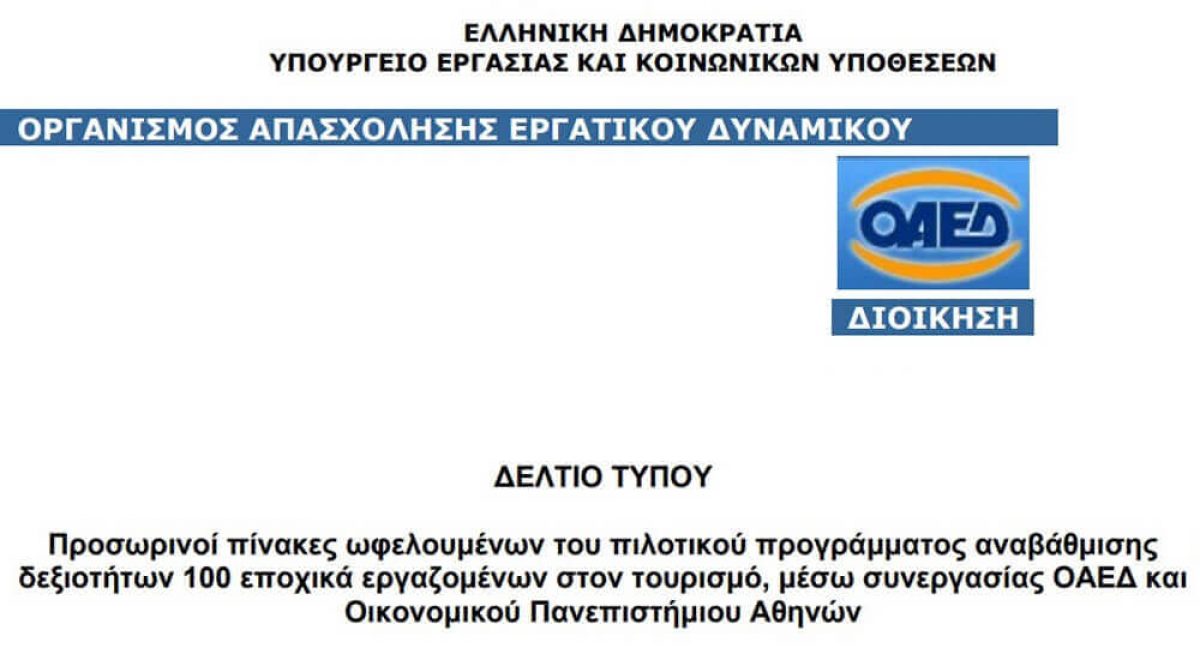 Το νέο πρόγραμμα σπουδών των Ανώτερων Σχολών Τουριστικής Εκπαίδευσης (Α.Σ.Τ.Ε.)
