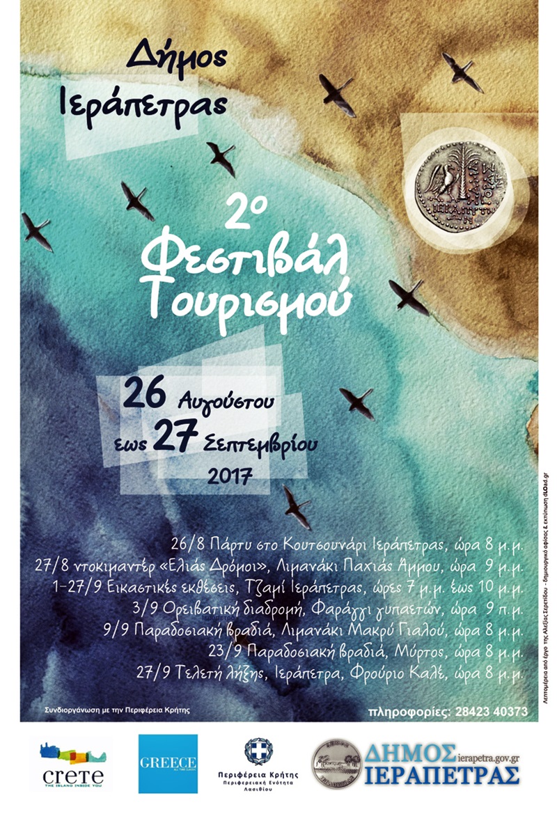 Με αφορμή την Παγκόσμια Ημέρα Τουρισμού που γιορτάζεται κάθε χρόνο στις 27 Σεπτεμβρίου, ο Δήμος Ιεράπετρας και η Δημοτική Επιτροπή Τουρισμού οργανώνουν το 2ο Φεστιβάλ Τουρισμού Δήμου Ιεράπετρας.