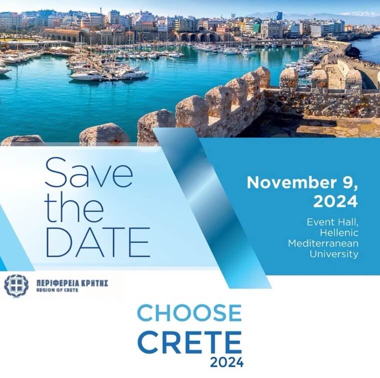 Σε συνέχεια της επιτυχημένης διοργάνωσης του Συνεδρίου «Choose Greece – Choose Crete 2023», ο μη κερδοσκοπικός οργανισμός Olympia Forum πραγματοποιεί το 2ο Συνέδριο «Choose Crete» το Σάββατο 9 Νοεμβρίου 2024 στο Ηράκλειο, στο Ελληνικό Μεσογειακό Πανεπιστήμιο, με σκοπό να λειτουργήσει ως ετήσιος θεσμός και Παρατηρητήριο Τουρισμού, το οποίο θα συνοψίζει όλα τα απαιτούμενα δεδομένα και πληροφορίες σχετικά με την τουριστική βιομηχανία στην Κρήτη μέσα στο διεθνές γίγνεσθαι της τουριστικής αγοράς και των παραγόντων που επηρεάζουν το μέλλον της.