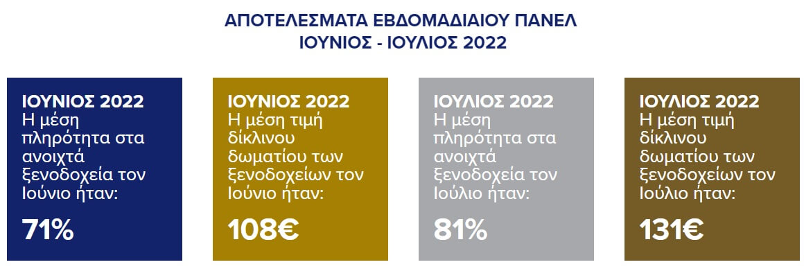 Τα παραπάνω στοιχεία περιλαμβάνονται στην έρευνα (πάνελ) του Ινστιτούτου Τουριστικών Ερευνών και Προβλέψεων (ΙΤΕΠ), σχετικά με τα κύρια ξενοδοχειακά μεγέθη για την τουριστική περίοδο Μαΐου – Οκτωβρίου 2022, με σκοπό την αποτύπωση της πραγματικής εικόνας του ξενοδοχειακού κλάδου.
