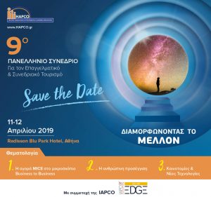 Στις 11 και 12 Απριλίου 2019 θα πραγματοποιηθεί στο ξενοδοχείο Radisson Blu Park της Αθήνας, το 9ο Πανελλήνιο συνέδριο επαγγελματικού και συνεδριακού τουρισμού, που οργανώνει ο Σύνδεσμος Ελλήνων Επαγγελματιών Οργανωτών Συνεδρίων – HAPCO (Hellenic Association of Professional Congress Organizers).