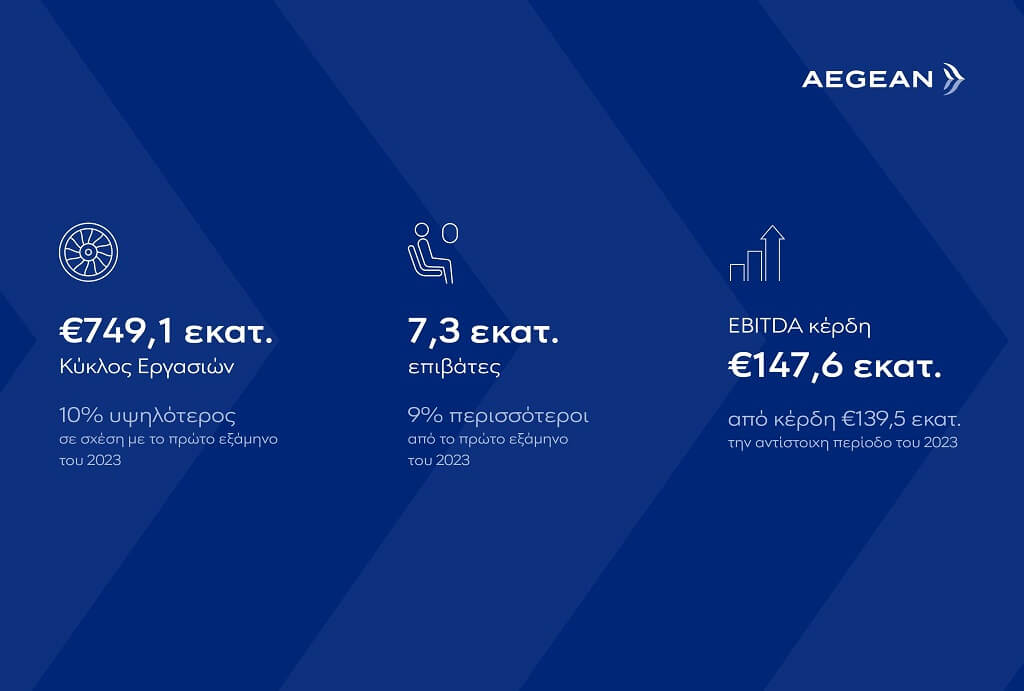 Τα παραπάνω περιλαμβάνονται στα οικονομικά αποτελέσματα για το δεύτερο τρίμηνο και το πρώτο εξάμηνο του 2024 που ανακοίνωσε η Aegean.