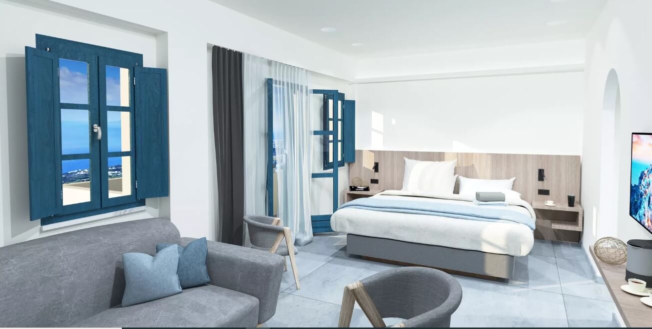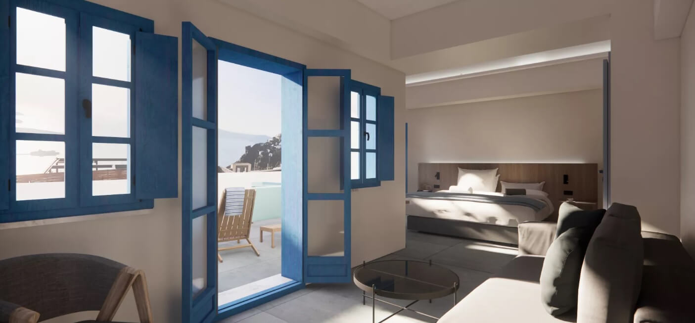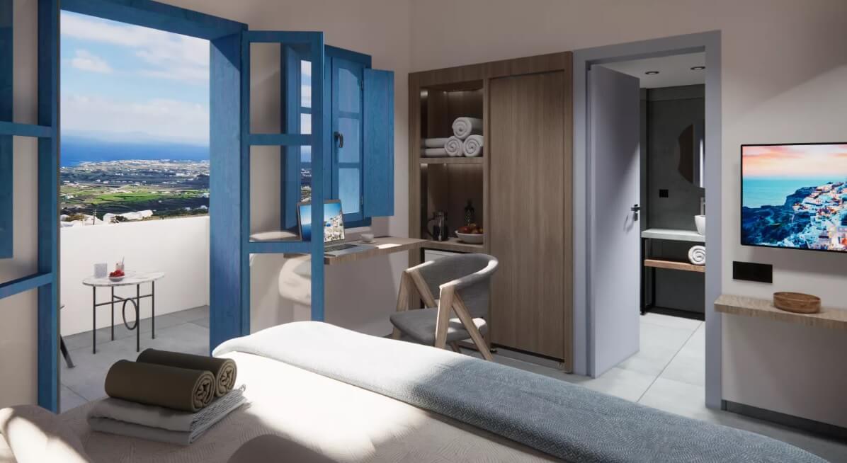 Το Aeifos Boutique Hotel θα διαθέτει 16 δωμάτια και σουίτες, η κάθε μία με τη δική της πισίνα, κεντρική πισίνα, εστιατόριο, lobby all day bar, fitness center και πανοραμική θέα προς την Καλντέρα.