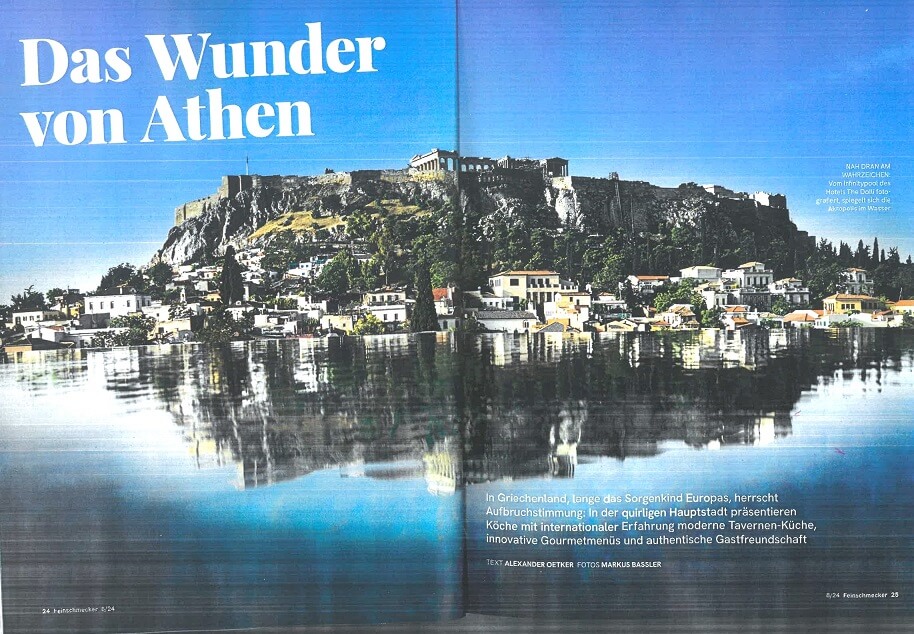 Το αφιέρωμα ξεκινά με την ελληνική πρωτεύουσα, όπου υπό τον τίτλο «Το θαύμα της Αθήνας», ο συντάκτης σημειώνει: «Στην Ελλάδα, μετά την κρίση, επικρατεί αισιοδοξία. Στη ζωντανή πρωτεύουσα, μάγειροι – σεφ με διεθνή εμπειρία παρουσιάζουν τη μοντέρνα κουζίνα της ταβέρνας, καινοτόμα μενού και αυθεντική φιλοξενία».