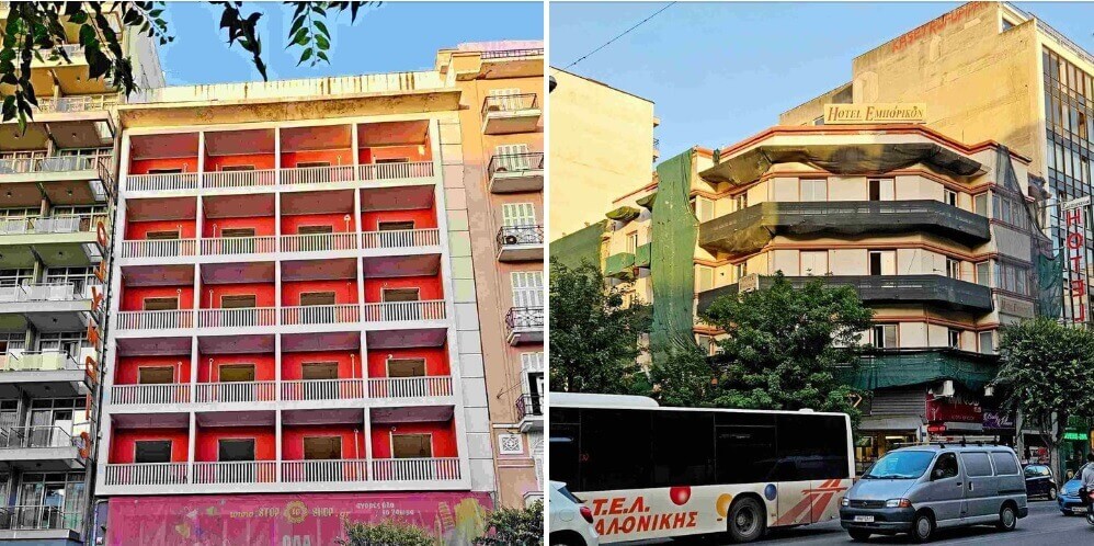 Πρόκειται για τα Hotel Εμπορικόν και Hotel Olympic (φωτογραφία).