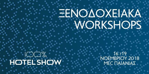 Τα ξενοδοχειακά workshops του 100% Hotel Show 2018 είναι καλύτερα από ποτέ, αφού οι θεματολογίες τους καλύπτουν ένα ευρύ φάσμα που ξεκινάει από τις πωλήσεις και φτάνει μέχρι και τον ιδιαίτερο αρχιτεκτονικό σχεδιασμό των ξενοδοχείων.