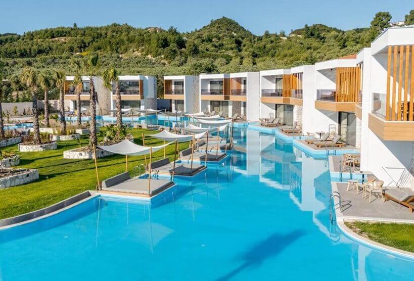 Πρόκειται για επένδυση που έφτασε στα 10.000.000 ευρώ με σκοπό τη δημιουργία ενός εντυπωσιακού ξενοδοχείου σε έκταση 20 στρεμμάτων με 78 ευρύχωρα δωμάτια, εκ των οποίων τα μισά έχουν άμεση πρόσβαση στην εξωτερική πισίνα, που ξεπερνά τα επτά στρέμματα και αποτελεί τη μεγαλύτερη πισίνα στη Χαλκιδική.