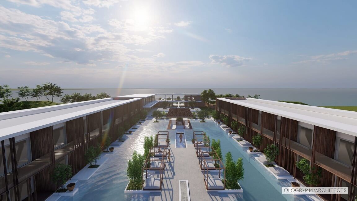 Το εντυπωσιακό resort κατασκευάζεται σε παραθαλάσσιο οικόπεδο που βρίσκεται στη λεωφόρο Ενώσεως αριθμός 10 και θα διαθέτει 48 σουίτες, πισίνες, εστιατόριο, nautical μπαρ, καφέ, spa, χώρους εκδηλώσεων κ.ά.
