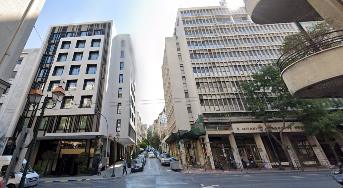 Φωτογραφία: www.google.com/maps (αριστερά το Academias Hotel και δεξιά το κτήριο της ΧΑΝ).
