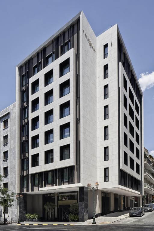 Το 5άστερο Academias Hotel, που λειτουργεί από το Μάιο του 2019, διαθέτει 60 δωμάτια και σουίτες, rooftop bar – restaurant με θέα προς την Ακρόπολη, ένα ακόμη εστιατόριο, lounge bar, εσωτερική θερμαινόμενη πισίνα, γυμναστήριο κ.ά.