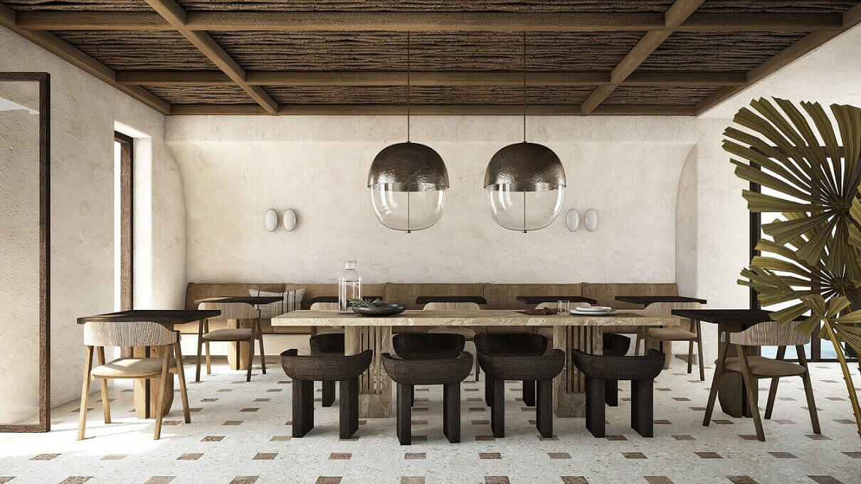 Για το εστιατόριο του resort, ο chef Λευτέρης Λαζάρου, θα σχεδιάσει ένα αυθεντικό ελληνικό μενού με σύγχρονη προσέγγιση, χρησιμοποιώντας τα καλύτερα προϊόντα του νησιού και της θάλασσας που το περιτριγυρίζει και συνοδεύοντάς το με μερικές από τις καλύτερες ετικέτες ελληνικών και ξένων κρασιών.