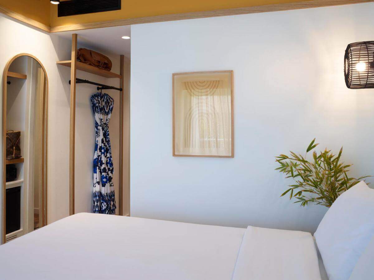 Ζεστά χρώματα εμπνευσμένα από το φυσικό τοπίο και τις αμμώδεις παραλίες σε συνδυασμό με μπλε πινελιές κυριαρχούν στο εσωτερικό των δωματίων δημιουργώντας ένα περιβάλλον χαλάρωσης που προσκαλεί τον επισκέπτη να ζήσει νέες εμπειρίες, απολαμβάνοντας την κάθε στιγμή.