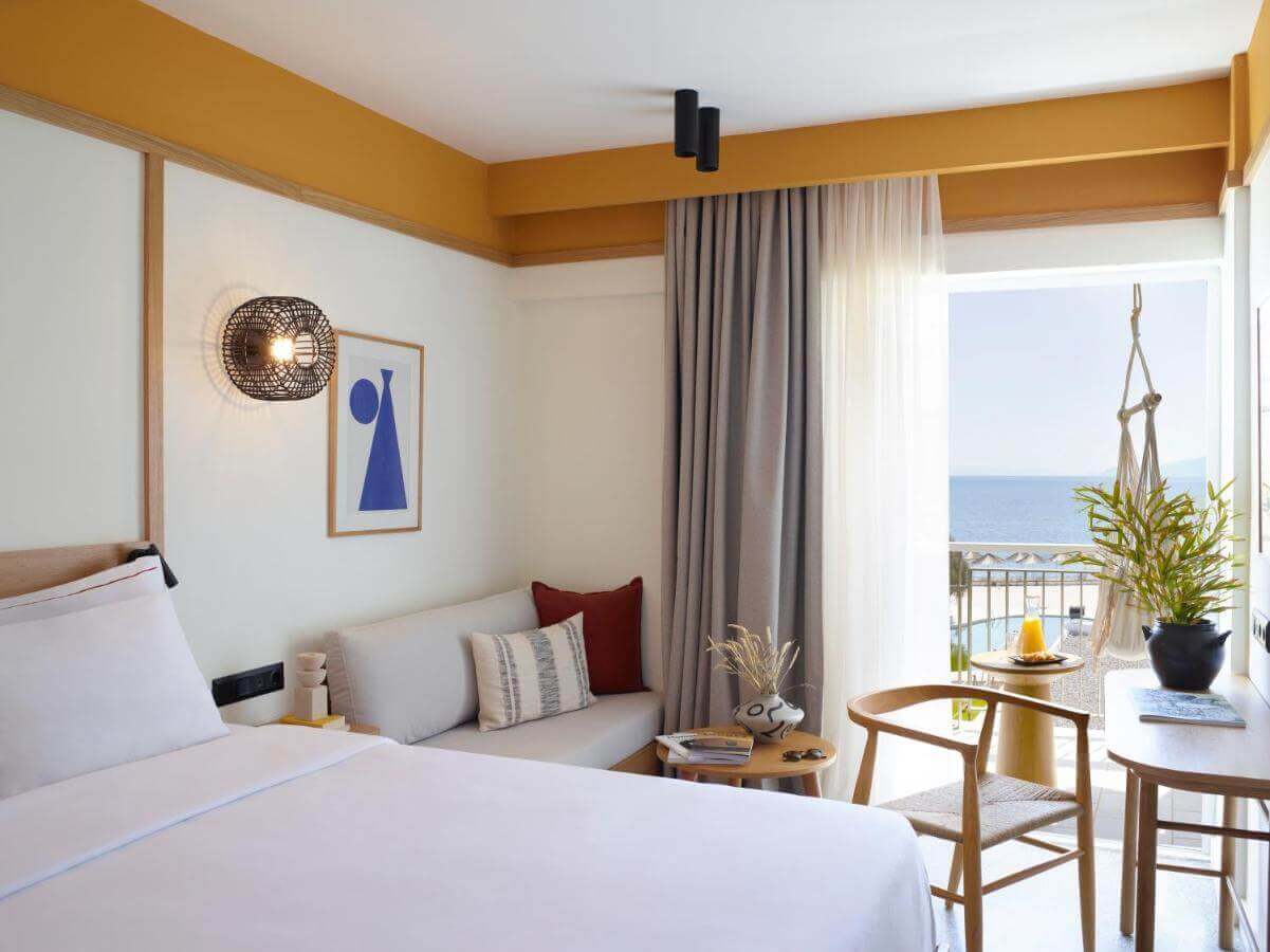 Τα δωμάτια προσφέρουν ανεμπόδιστη θέα στον κήπο και τη θάλασσα, υπενθυμίζοντας ανά πάσα στιγμή στον επισκέπτη τη μοναδική φυσική ομορφιά του τόπου, ενώ εξωτερικά η παραλία σε συνδυασμό με την πλούσια τοπική βλάστηση και τους υπαίθριους χώρους δημιουργούν ένα ιδιαίτερο οικοσύστημα χαλάρωσης, ιδανικό για εξερεύνηση.