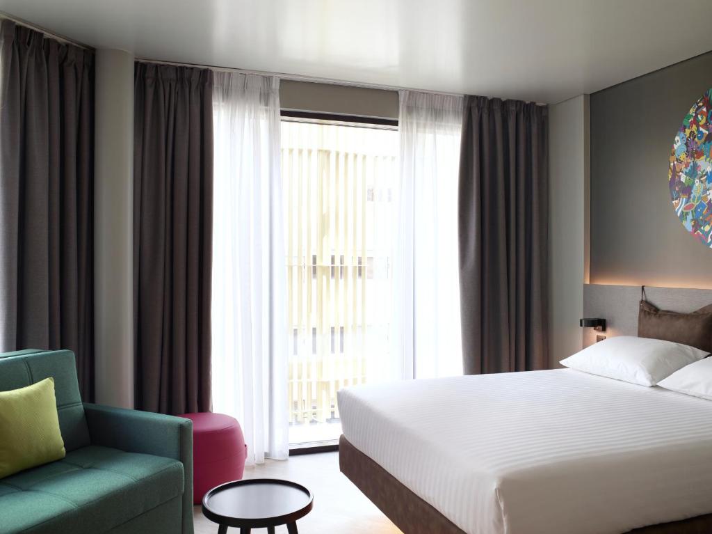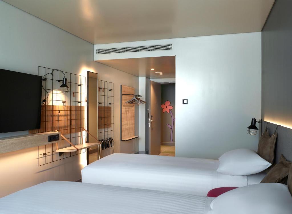 Τα έντονα graffiti που δημιούργησε αποκλειστικά για το ξενοδοχείο ο διεθνούς φήμης, Έλληνας street artist B., η διακόσμηση με έντονα χρώματα και pop αναφορές, δημιουργούν μια νεανική και ζωντανή ατμόσφαιρα.