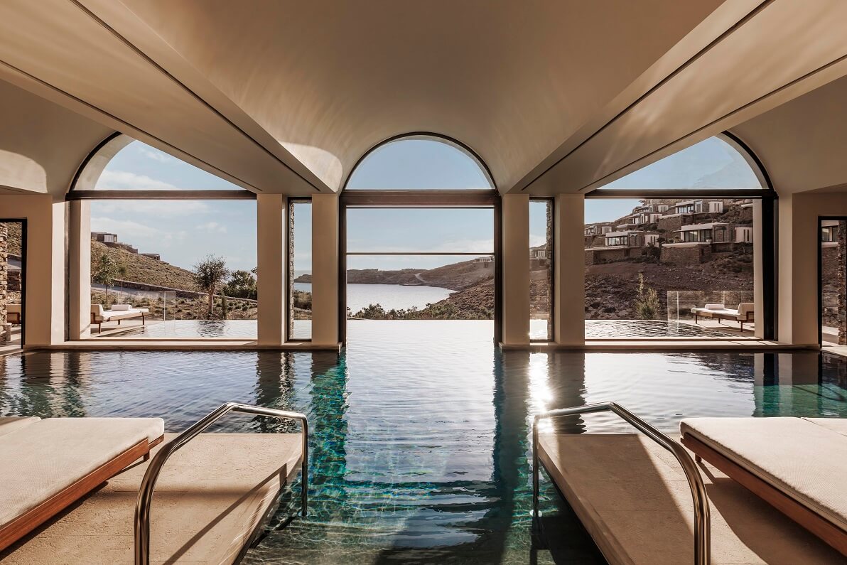 Το spa του One&Only Kéa Island παρέχει θεραπείες υγρού στοιχείου watsu, πισίνες με παγωμένο νερό, steam rooms και σάουνες, τζακούζι και μια πισίνα εσωτερικού – εξωτερικού χώρου με μια απρόσκοπτη θέα στη θάλασσα.