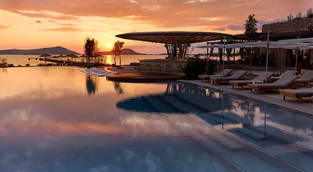 Το WET Deck με την infinity πισίνα, συνδυάζει την ξεκούραση με την ηλιοθεραπεία, πάντα με τη συναρπαστική θέα στον Κόλπο του Ναβαρίνου.