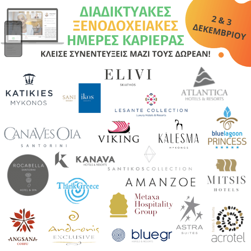 Οι Διαδικτυακές Ξενοδοχειακές Ημέρες Καριέρας: Greece & Cyprus Edition πραγματοποιούνται στις 2 & 3 Δεκεμβρίου.
