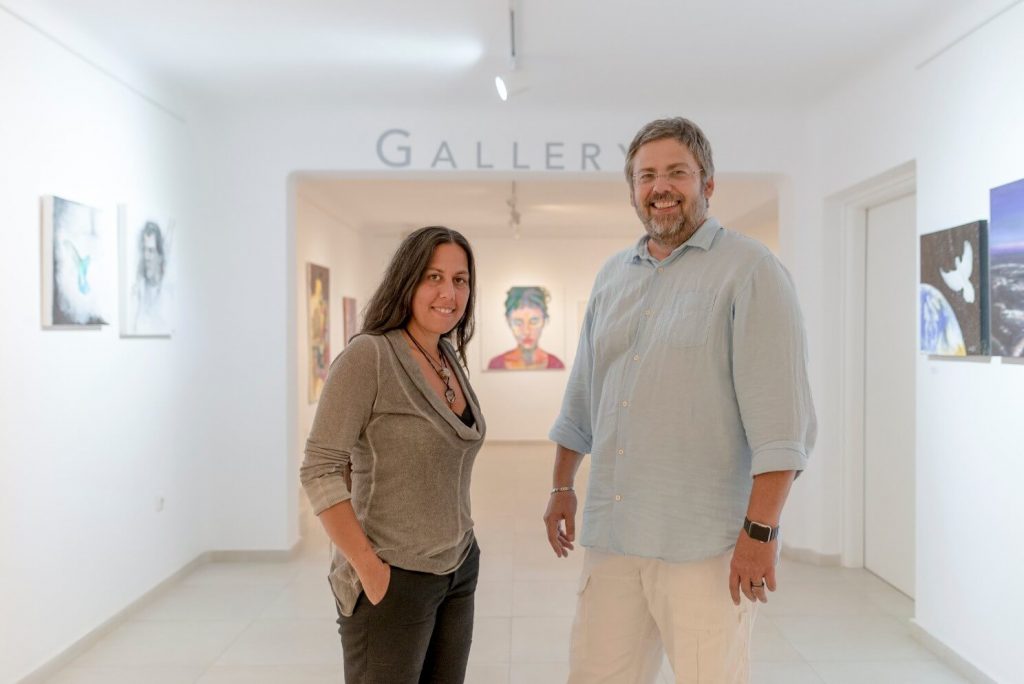 Η Κέλλυ Αθανασιάδου, εικαστικός και Managing Director της #Rest@rt και ο Γιώργος Γραφάκος, CEO της Aqua Vista Hotels