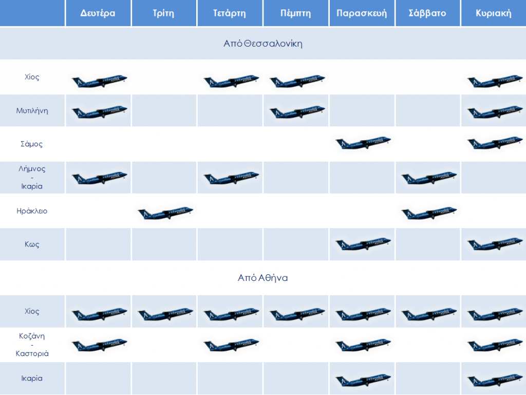 Η Astra Airlines ανακοίνωσε το πρόγραμμα των πτήσεων της χειμερινής περιόδου (27 Οκτωβρίου 2019 – 28 Μαρτίου 2020), το οποίο περιλαμβάνει πτήσεις από Αθήνα και Θεσσαλονίκη προς Χίο, Σάμο, Μυτιλήνη, Κοζάνη – Καστοριά, Λήμνο – Ικαρία, Ηράκλειο και Κω.