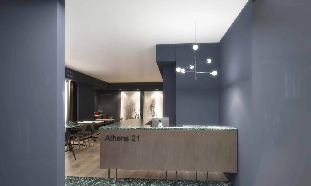 Το Athens 21, που βρίσκεται σε κτήριο έξι ορόφων, διαθέτει 19 δωμάτια και σουίτες, με μεγάλα παράθυρα μέσα από τα οποία μπορεί κανείς να απολαύσει το φως του ήλιου και τη θέα στην πόλη.