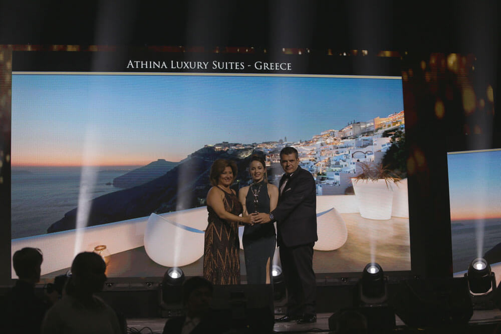 Λίγες ημέρες νωρίτερα, το Athina Luxury Suites θριάμβευσε στα World Luxury Hotel Awards κατακτώντας το βραβείο Best Luxury Honeymoon Hotel στην Ευρώπη, στο πλαίσιο της 13ης ετήσιας τελετής των World Luxury Hotel Awards που πραγματοποιήθηκε στις 12 Οκτωβρίου 2019, στο Arctic Tree House Hotel, στη Φινλανδία.