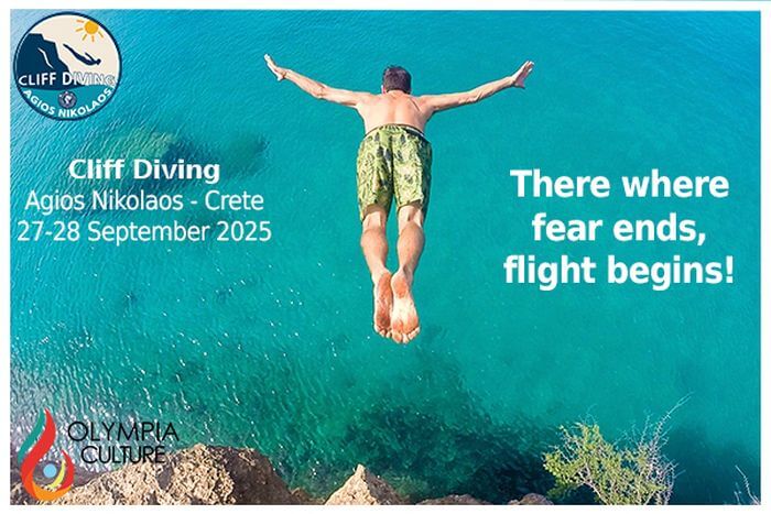 2. Το ίδιο Σαββατοκύριακο 27 και 28 Σεπτεμβρίου θα διεξαχθεί στη λίμνη Βουλισμένη του Αγίου Νικολάου στην Κρήτη το «Cliff Diving Agios Nikolaos». Κορυφαίοι αθλητές από όλο τον κόσμο θα εκτελέσουν θεαματικά άλματα στο νερό από μεγάλο ύψος, χωρίς τη χρήση ειδικού εξοπλισμού, μετατρέποντας το λιμάνι σε σκηνικό μοναδικής έντασης και ομορφιάς.
