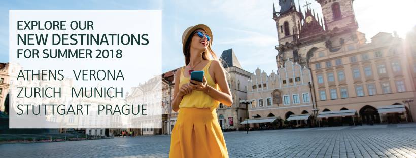 Η Cyprus Airways ανακοίνωσε έξι νέους προορισμούς (Αθήνα, Μόναχο, Πράγα, Στουτγάρδη, Ζυρίχη και Βερόνα), που θα ενταχθούν στο πτητικό της πρόγραμμα το 2018, από το αεροδρόμιο της Λάρνακας.