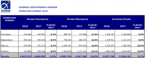 Την περίοδο Ιανουαρίου – Απριλίου του 2018, η κίνηση του αεροδρομίου της Αθήνας έφθασε τα 5.877.730 επιβάτες, σημειώνοντας αύξηση 9,7%, σε σχέση με το ίδιο διάστημα του 2017 (5.356.139 επιβάτες).