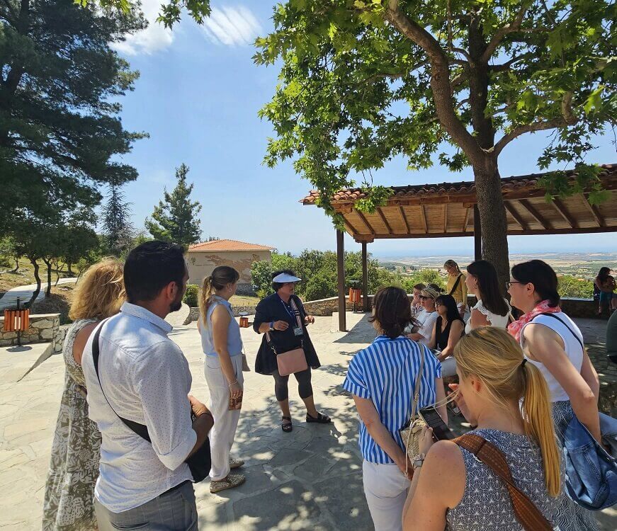 Ακολούθησε εμπειρία γευσιγνωσίας σε βιολογικό αμπελώνα και εν συνεχεία ξενάγηση στο σπήλαιο των Πετραλώνων (φωτογραφία).
