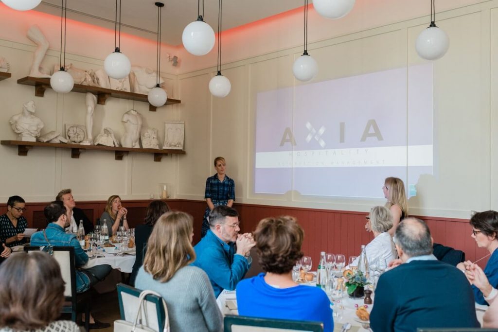 «Σταθερός στόχος της Axia Hospitality ήταν και παραμένει να αναδείξει τα ξενοδοχεία, με τα οποία συνεργάζεται σε παγκόσμιους προορισμούς. Στο πλαίσιο αυτού του σκοπού, η ομάδα της Axia Hospitality ταξιδεύει αδιάκοπα και πρωτοστατεί σε όλες τις διεθνείς εκθέσεις και τα roadshows του Τουρισμού (από το Μεξικό και το Λονδίνο, μέχρι τις Κάννες και το Ριάντ).