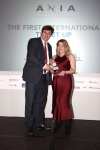 2η: H Φλώρα Παρασκευοπούλου, PR & Communication Director της Αxia Hospitality κατά την παραλαβή του βραβείου Best Initiative Promoting Greece Abroad.