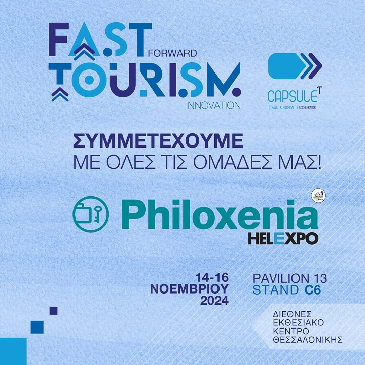 Από τον CapsuleT Travel & Hospitality Accelerator – μια πρωτοβουλία του Ξενοδοχειακού Επιμελητηρίου της Ελλάδας (Ξ.Ε.Ε.), ανακοινώθηκε η συμμετοχή του στη Philoxenia 2024, που θα πραγματοποιηθεί στη Θεσσαλονίκη, μεταξύ 14 και 16 Νοεμβρίου 2024.