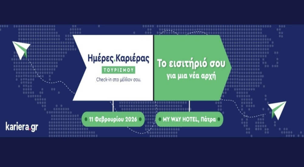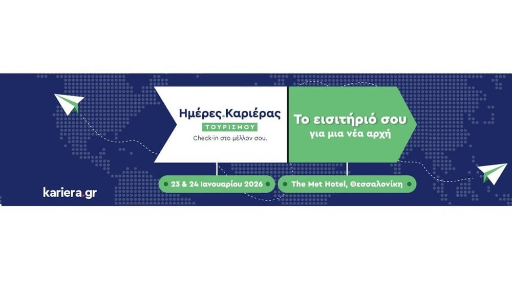 Οι «Ημέρες Καριέρας Τουρισμού» του kariera.gr θα πραγματοποιηθούν στη Θεσσαλονίκη, την Παρασκευή 23 και το Σάββατο 24 Ιανουαρίου 2026, στο The Met Hotel, από