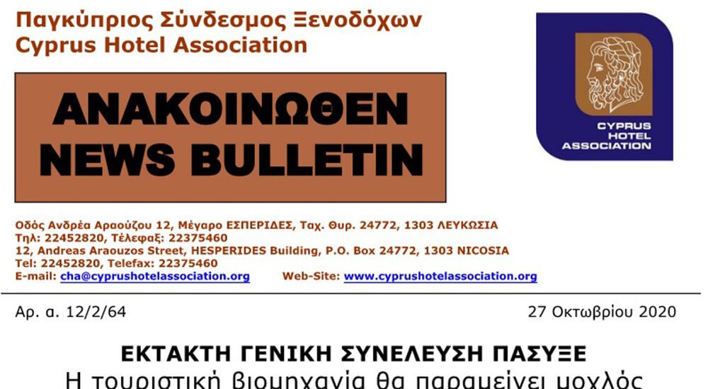 Tην περίοδο Ιανουαρίου - Ιουλίου 2020, η μείωση στα έσοδα από τον τουρισμό στην Κύπρο σε σχέση με την αντίστοιχη περίοδο το 2019 υπολογίζεται στο