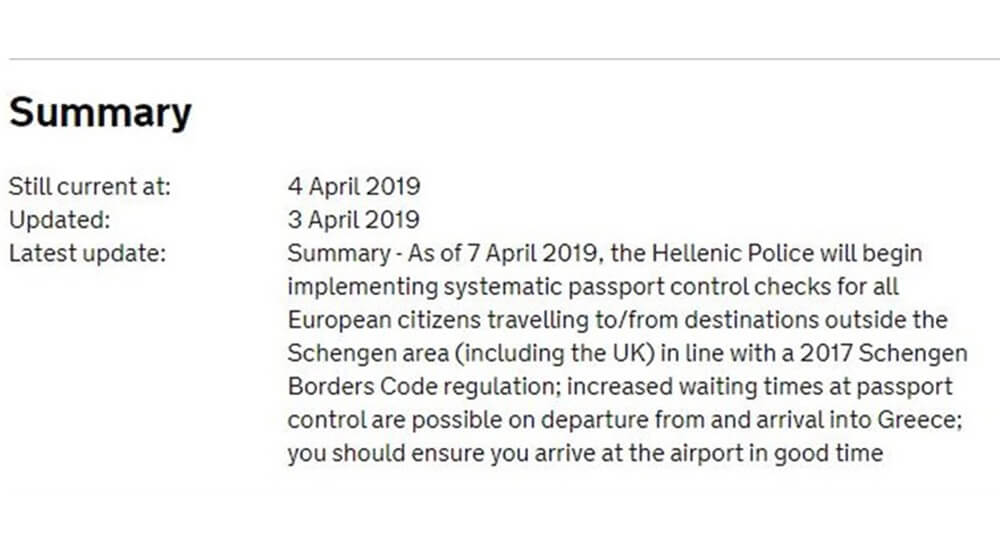 Ταξιδιωτική οδηγία για τους Βρετανούς που θέλουν να έρθουν στην Ελλάδα αναρτήθηκε στην ιστοσελίδα του υπουργείου Εξωτερικών της Βρετανίας προετοιμάζοντας τους για καθυστερήσεις στα