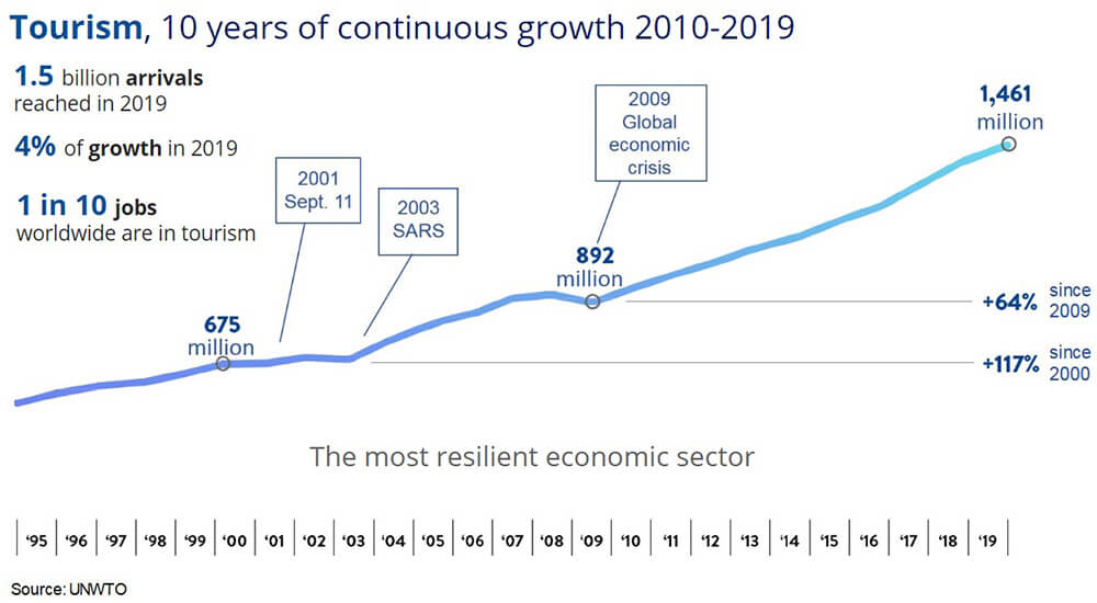 O τουρισμός έχει μια τεράστια ικανότητα επαναφοράς και ανάκαμψης και το γράφημα που αναρτήθηκε στην ιστοσελίδα του Παγκόσμιου Οργανισμού Τουρισμού (World Tourism Organization) δείχνει