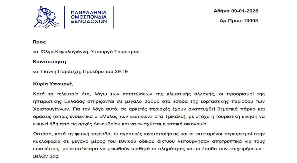 Ο Σύνδεσμος Ελληνικών Τουριστικών Επιχειρήσεων (ΣΕΤΕ), απευθύνει έκκληση για την άμεση αποκατάσταση της κανονικότητας στο οδικό δίκτυο, προκειμένου η εορταστική περίοδος να ολοκληρωθεί με