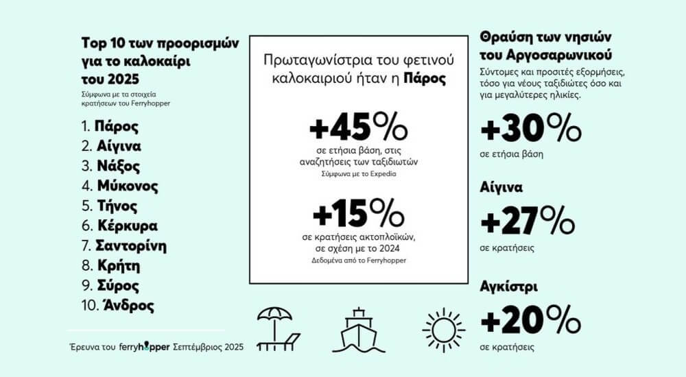 Το φετινό καλοκαίρι σημειώθηκε αύξηση 25% στην επιβατική κίνηση σε σχέση με το 2024, με βάση τις ακτοπλοϊκές κρατήσεις, όπως καταγράφουν τα στοιχεία της