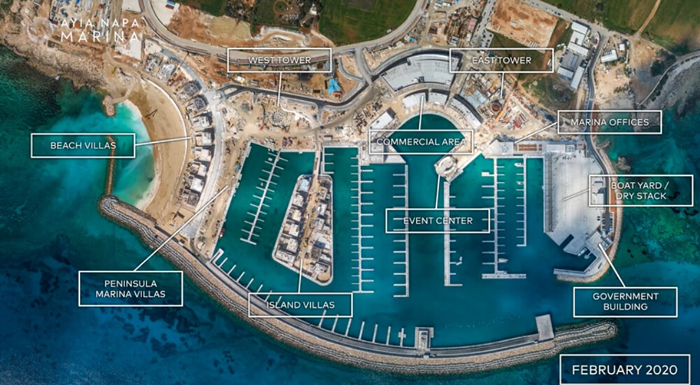 Στην τελική φάση βρίσκονται τα έργα κατασκευής της μαρίνας Αγίας Νάπας. Ήδη τα γραφεία διοίκησης, τα κτήρια που στεγάζουν κρατικές υπηρεσίες (λιμενικό, αστυνομία, τελωνείο κ.ά.), έχουν