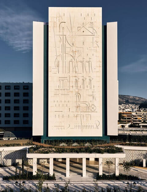 Στις προσόψεις που φιλοτέχνησε ο πρωτοπόρος Έλληνας καλλιτέχνης Γιάννης Μόραλης, τα αυθεντικά μαρμάρινα εσώγλυφα με τις μυθολογικές αναφορές έχουν συντηρηθεί και αναδεικνύονται με ιδιαίτερη φροντίδα.